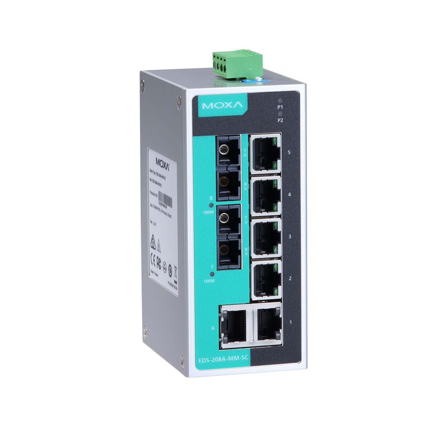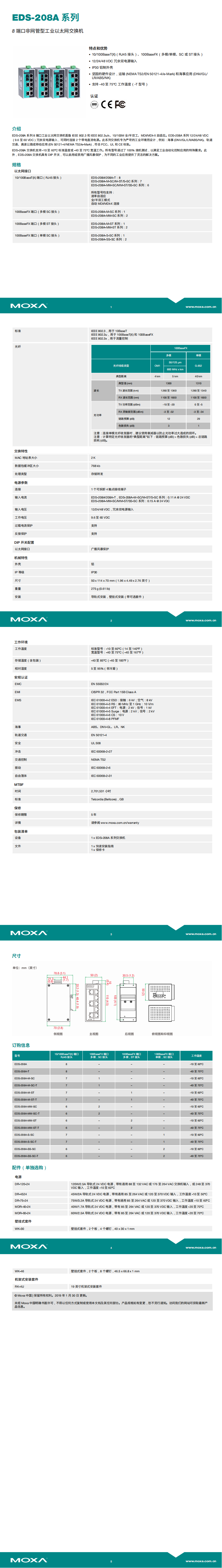 MOXA EDS-208A-MM-SC非网管百兆工业以太网交换机 含2个多模SC光口