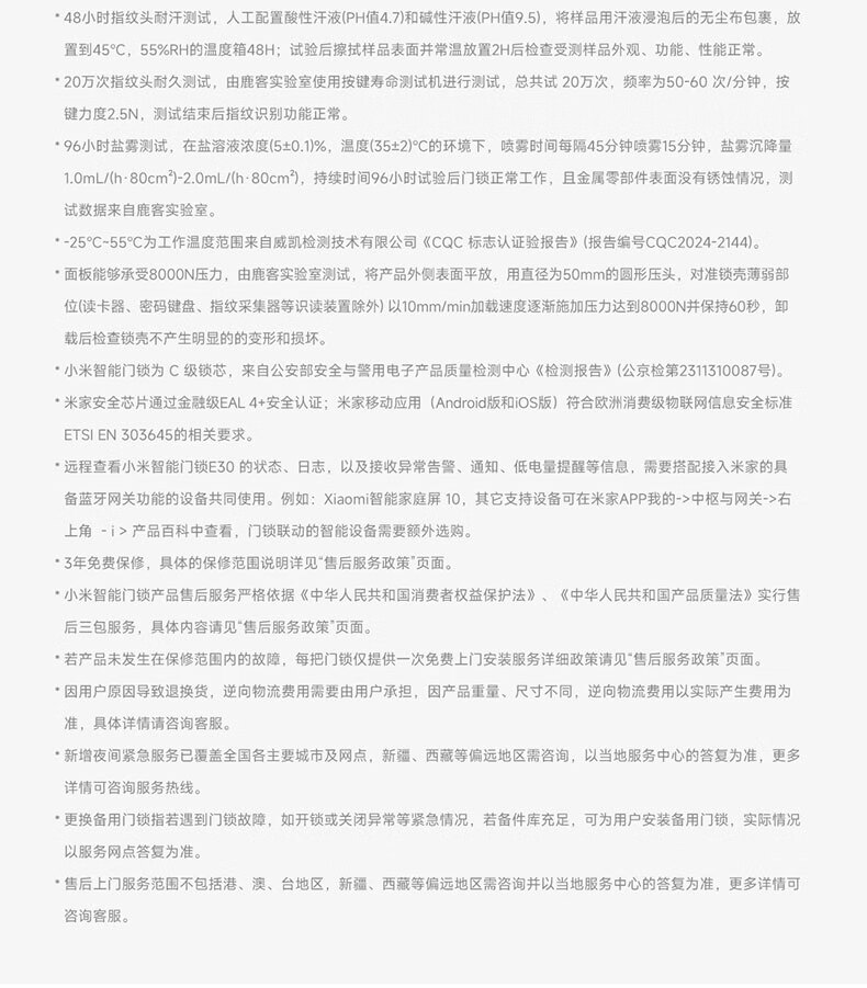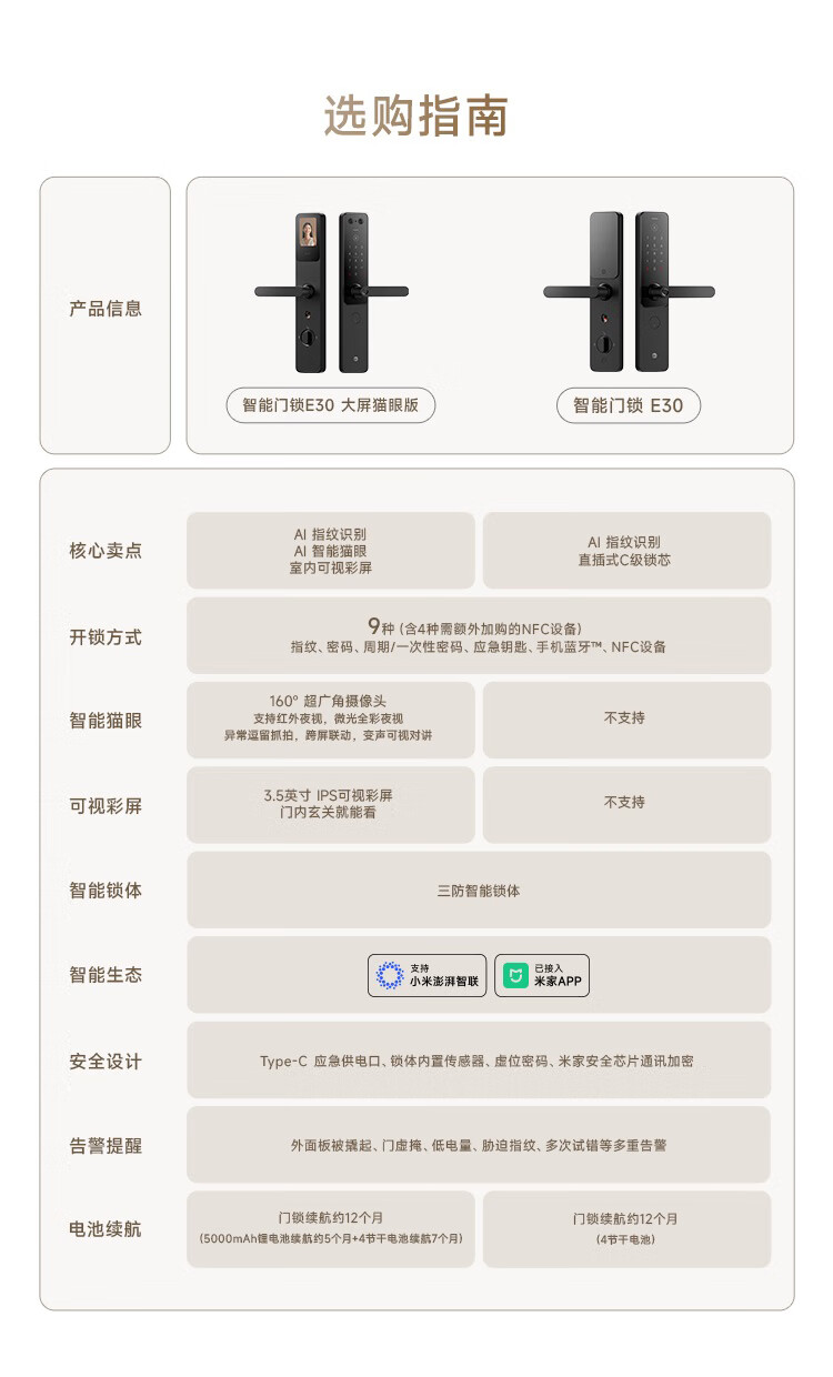 首页 >> 小米智能门锁 E30 C级锁芯 指纹锁电子锁家用门锁 防盗门锁密码锁